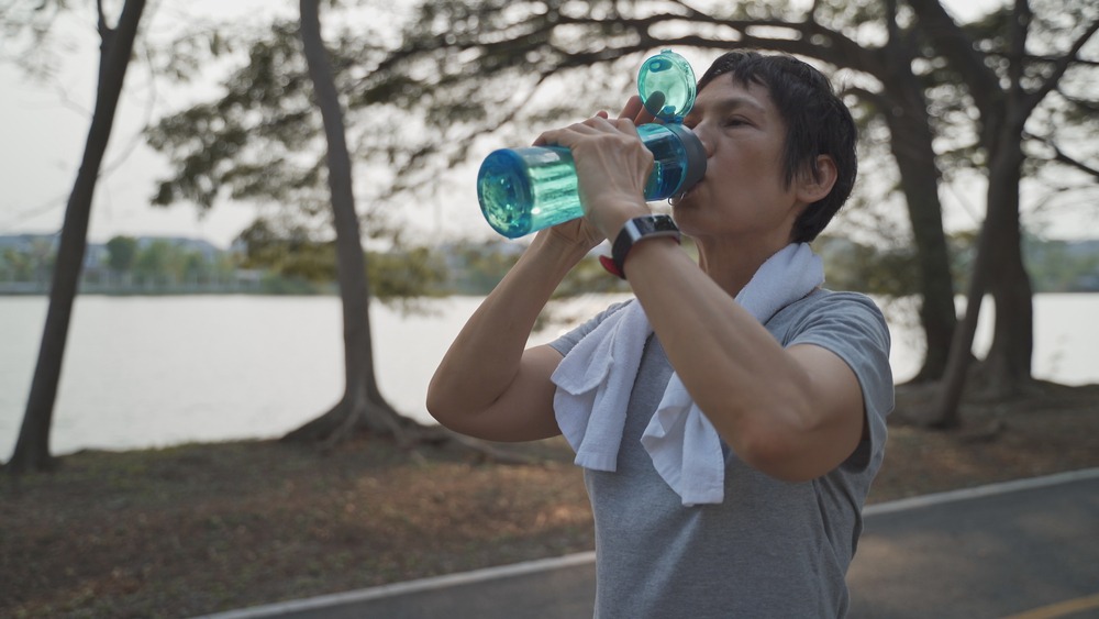 Người bệnh hãy nhấp từng ngụm nước nhỏ đều đặn nhằm tránh mất nước trong quá trình đi bộ